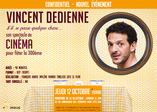Im Kino Live übertragenes Spektakel: "S'il se passe quelque chose" Der Künstler hat das Kino ausgewählt, um sein 300. Spektakel zu feiern!
