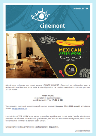 Toujours au courant Inscrivez-vous à la newsletter de Cinemont et recevez 1x par mois les dernières infos de films, d'évènements, de promotions ainsi que les bons plans du moment !