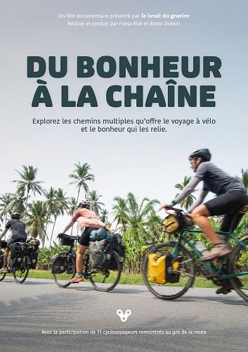 Du bonheur à la chaîne tisse les récits de cyclovoyageurs d’horizons et d’âges différents rencontrés en chemin. Que ce soit seuls, en binôme ou en famille, tous ont décidé d’écouter leur petite voix intérieure qui leur soufflait de prendre la route. À travers leurs témoignages, ce documentaire dévoile l’infinie richesse des différentes façons de voyager à vélo et le bonheur qui les relie. Ce film est une invitation à ralentir, à s’émerveiller, à vivre autrement, et peut-être, à enfourcher son propre vélo.
