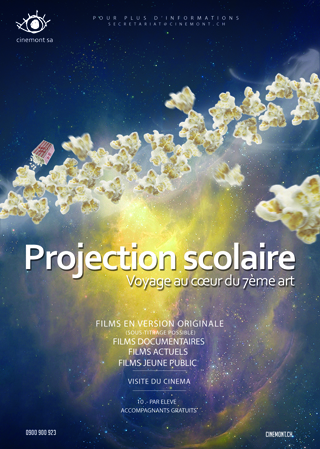 Le 7ème art est un monde haut en couleurs. Propice aux découvertes, le voyage cinématographique nous invite à pousser des portes au-delà de notre propre réalité et de s’y laisser embarquer, le temps d’un film. Animer son regard d’émotions ou le rendre avide de questionnements, le cinéma nous projette pour mieux interagir avec notre quotidien, avec les autres et mieux dessiner notre futur. Dans le cadre d’une projection scolaire, invitez vos élèves à faire le premier pas dans ce Voyage au cœur du 7ème art. Allier la découverte à l’apprentissage, joindre l’utile à l’agréable, définir un pont entre l’esprit et les émotions, voilà ce que Cinemont propose aux écoles.